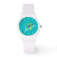 Girls and Women's Mit Monogramm Watch - Fun und brillante, saubere und klassische personalisierte Uhren für das elegante, aber gemütliche Girl Girl auf Ihrer Geschenkliste. Klassisch und feminin mit leicht lesbaren, grauen Hashmarken Punkten auf türkisfarbenem Aqua aquamarin blaues Gesicht, mit kalk-grünem Monogramm und optionalem weißen Skriptnamen Vorname. Fett und ausgeklügelt für Führungskraft im traditionellen Stil - klicken Sie auf Anpassen, um die Hintergrundfarbe, die Größe des Schriftartes, den Stil oder die Farbgebung zu ändern.