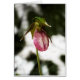 Ein nah aufgewachsenes Foto eines rosa Frauenschleifers, der im Schatten eines Baumes gewachsen ist.