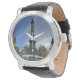 Uhr, Vintage Männeruhr mit schwarzem Lederarmband