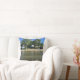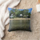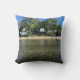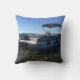 ein Wurfskissen mit einem Lagerbild auf der Front und einem Pontonboot auf der Rückseite.