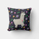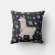 Ein flauschiges Lama, in einem kräftigen Garnkragen aufgehängt, Posen in tiefer Onyx-Kulisse mit lebhaften Blume in Orange-, Rosa-, Blau- und Grüntönen. Dieses köstliche Kissen bringt eine spielerische und fröhliche Touch in jedes Zimmer.