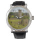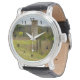 Uhr, Vintage Männeruhr mit schwarzem Lederarmband