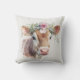 Aquarellbild einer niedlichen Kuh mit rosa Blume und Efeu-Kopfteil.
