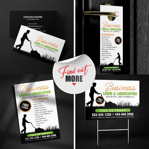 Dieses minimalistische und berufliche Visitenkartendesign ist ideal für die Präsentation Ihrer Rasen- und Landschaftserfahrung. Die kühne Silhouette einer Person, die einen Rasen mäht, kommuniziert Ihre Dienste sofort, während der schwarze Hintergrund Ihre Kontaktinformationen betont. Wichtigste Merkmale: Einfach und wirkungsvoll: Das saubere Design konzentriert sich auf die wesentlichen Informationen und sorgt für Klarheit und Lesbarkeit. Modern und beruflich: Die schlanke ästhetische und mutige Typografie vermittelt ein Gefühl von Professionalität und Kompetenz. Anpassbar: Ändern Sie einfach den Firmennamen, Kontaktinformationen und fügen Sie Ihr eigenes Logo hinzu. Perfekt für einen bleibenden Eindruck: Mit diesen Visitenkarten können Sie Vertrauen schaffen und neue Kunden gewinnen.