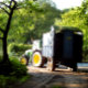 Regen wird prognostiziert und der Bauer arbeitet spät in den Abend, um das Gras für Silage zu bekommen.