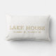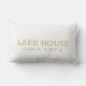 Maßgeschneiderte Imitate Gold und Weiß Stadt und Koordinaten, Breite und Länge Lumbar Kissen. Koordinaten des Lake House. (Sie können es mit Ihrer eigenen Heimatstadt anpassen) Vintages, klassisches, elegantes Schreibmaschinendesign im Schriftart.