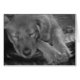 Diese detaillierte Schwarz-Weiß-Porträtfotografie fängt einen inhaltlichen Welpenhund ein, während sie bequem schläft. Sie ist eine Rettung von unbekanntem Erbe, ähnelt aber stark der Golden Retriever Rasse.