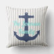 Ein toller Zusatz zu Ihrer Zuhause oder Ihrem Boot, unser nautisches Thema Kissen ist mit einem weichen grauen Streifen Hintergrund, Marineschützer und der Phrase Let's Sail away auf der Vorderseite. Fügen Sie Ihren eigenen Text auf die Rückseite.