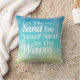 Dieses Kissen sagt Sommer! Vom ombre Hintergrund in den hübschen Schatten von Blauem, von aquamarinem und von Grünem. Zum Text, der sagt, lassen Sie den Sand Ihr Sitz sein, wie die Wellen Ihre Füße schlagen. Eine Konturskizze von Starfish fassen das Kissen ein und addieren interessante Beschaffenheit. Dieses Kissen ist für Strandhäuser oder -Wohngestaltung mit einem Ozeanküstenthema groß.