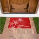 Eine hübsche und moderne Tür "Let It Snow" mit einem trendigen festlichen Muster mit weißen Schneeflocken auf rotem Hintergrund. Diese Türmatte ist leicht zu personalisieren mit Ihrem eigenen Namen oder Text, sodass es ein perfektes Weihnachtsgeschenk für Liebende. Der rote Hintergrund ist mit detaillierten weißen Schneeflocken geschmückt, die die Oberfläche bedecken. Jede dieser Schneeflocken wurde mit feinen Linien gestaltet, um einen extravaganten Spitzeneffekt zu erzielen. Der Text ist in einem anmutigen, fließenden kursiven Skript geschrieben, das eine personalisierte und einladende Touch hinzufügt. Der Gesamtstil ist charmant und fröhlich, mit einem klaren Urlaubsthema, das es zu einer wunderbaren Ergänzung zu jedem Zuhause während der Festsaison macht. Ideal, um Wärme und Feiertagsstimmung mit individueller persönlicher Touch zu verbreiten.