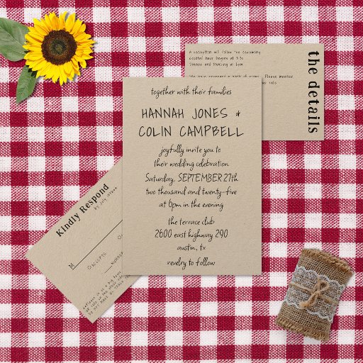 Elemente: handgeschriebene Typografie, skurrile Schriftart. Farben: schwarz auf Kraftpapier. Themen: lässig, Foto, draußen, romantisch, Brauerei, whimsical, Hinterhofhochzeit, kühle Hochzeit. Sammlung: Lässige handgeschriebene Typografie Kraft Wedding Collection Produkttyp: Umschließungskarte