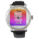Uhr, Vintage Männeruhr mit schwarzem Lederarmband