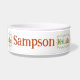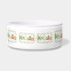 Lustige, launische Feiertagsschüssel für Hunde. Hübsches Geschenk für pelzige Freunde in dieser Saison. Farbdesign mit Stechpalme, Schneemann, Zuckerstange, Kerze, Pinienzapfen, Kardinal und Fellzweig umgeben von Weihnachtslichtern. Einfach den Namen des Hundes hinzufügen.