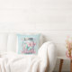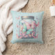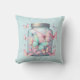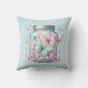 Ein Kissen mit einem magischen Bild, das pastellfarbene Schmetterlinge in einem Glas zeigt. Einige Schmetterlinge flattern auch außerhalb des Glases herum. Verstreute falsche Glitzerpartikel verleihen ihm eine mystische Qualität.