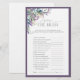 Modernes, elegantes Brautparty-Spiel "wer die Braut am besten kennt" mit einem Bouquet aus Lavendel-Blume und Gold und botanischem Grün, umgeben von einem reichen Lavendel. Personalisieren Sie Ihre Fragen in weichem Offschwarz, betont durch schöne moderne handgeschriebene Kalligraphie. Kontaktieren Sie Designer für passende Produkte. Copyright Anastasia Surridge für Elegant Invites, alle Rechte vorbehalten.