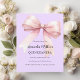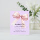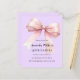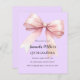 Ein weicher Lavendel, lila Hintergrund, mit einem großen rosa Bogen verziert. Personalisieren und fügen Sie einen Namen und Party-Details hinzu. 1 Blatt = 1 Einladung mit Druckkante bis Kante.