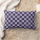 A vibrant checkered pattern with alternating black and lavender squares creates a bold, symmetrical grid. The design is balanced and visually striking.