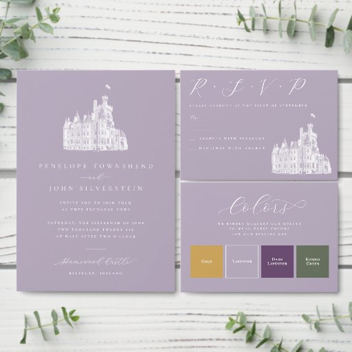 Lavender Vintage Castle Destination Wedding Dankeskarte