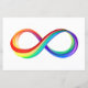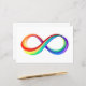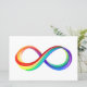 Helles Symbol der Unendlichkeit aus Plastikschichten rot, gelb, grün, türkis, blau und lila gesättigt Farben auf weißem Hintergrund.
