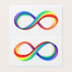Helles Symbol der Unendlichkeit aus Plastikschichten rot, gelb, grün, türkis, blau und lila gesättigt Farben auf weißem Hintergrund.