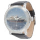 Uhr, Vintage Männeruhr mit schwarzem Lederarmband