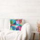 Das abstrakte Kunstwerk von ZoeSPEAK auf diesem quadratischen Throw-Kissen begann als Zoes Originalfoto eines Blattes aus einer Pflanze von Meerestrauben. Das Design untersucht die Vielfalt der Farbkombinationen, die aus den hellen Licht- und Schattenbereichen des glatten, fast ovalen Blattes und des Hintergrunds kommen. Es gibt helle Rottöne, Pink, Lavendel, Aqua und dunkle Blues, orange und dunkel und helle Grüntöne. Die Adern und der Stamm des Blattes fügen Dimension und Farben hinzu.