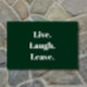 Schließlich ein inspirierendes Sprichwort für die introvertierten unter uns. "Lebe. Lachen. Verlass." verkündet diesen humorvollen Türmchen, der für Introvertierte, für Antisoziale und sozial Unbehagliche ist, die Gäste mit etwas Abneigung und vielleicht sogar etwas Angst empfangen. Einfache, moderne weiße Typografie auf einem klassischen Waldgrün. Unerwartet, sonderbar und nur ein wenig sarkastisch, ist diese lustige Türmatte perfekt für diejenigen, die dunklen, trockenen Spaß schätzen und sich nicht scheuen, ihn mit ihren Besuchern zu teilen (von denen sie hoffen, bald verlassen).