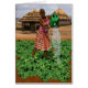 Dorfmädchen gießen ihr kleines Stück Gemüse.
