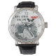 Uhr, Vintage Männeruhr mit schwarzem Lederarmband