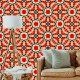 Diese lebendige Tapete zeichnet sich durch ein kompliziertes geometrisches Muster aus, das Inspiration für die traditionellen afrikanischen Textilien zeichne. Die farbenfrohe Farbpalette ist in Rot, Schwarz und Creme gehalten. Das Hauptmotiv zeigt einen achtzackigen Stern in Rot mit schwarzen Details. Dieser Stern strahlt von einem cremefarbenen Quadrat aus und schafft einen faszinierenden Brennpunkt. Um den Stern herum bilden abwechselnde Bänder kleinerer geometrischer Elemente (auch in schwarz und crem) eine dynamische Tessellation. Diese eckigen Formen rufen Bewegung und Rhythmus hervor. Ob Sie nun eine Akzent-Wand kreieren oder einen ganzen Raum bedecken, dieses Tapete lädt zu Konversation und Neugier ein.