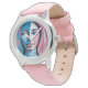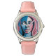Lebhafte, rosa und blaue Abstrakte Gesichtskunst K Armbanduhr