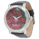 Lebhafte Rote Rose auf grünem, grünem, grünem Hint Armbanduhr