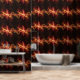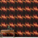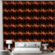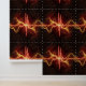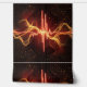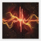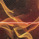 Ein auffallendes visuelle von Rot- und Orangenwellen mit fließenden Linien und Impulsen, die ein Gefühl von Rhythmus und Bewegung vor einem dunklen Hintergrund erzeugen.