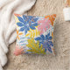 Ein dynamisches Design, das eine Vielzahl tropischer Blätter in kühnen und lebhaften Farbtönen wie Blau, Rosa, Gelb und Orange zeigt. Die sich überlappenden Blätter, gepunktete Texturen und spielerische Muster schaffen eine energetische und lebendige Komposition, die das Wesen einer üppigen tropischen Umgebung hervorruft.