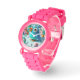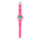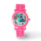 Eine lebendige rosa Uhr mit einem spielerischen Cartoon-Charakter, perfekt, um jedem Outfit Spaß zu machen.