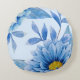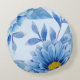 Stellen Sie sich ein rundes Kissen vor, das mit einem lebendigen blauen Aquarell-Blumenmuster dekoriert ist, das zwei markante Blume aufweist. Dieses Design ist ideal, um jedem Zimmer Eleganz und Ruhe zu verleihen.