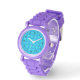 Uhr, Kinderuhr aus Edelstahluhr mit lila Lederarmband