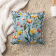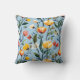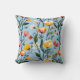 Ein buntes Blumenmuster mit handbemalten Blume in warmen Gelb-, Orange-, Rot- und Weißtönen vor einem sanft blauen Hintergrund. Die elegante botanische Komposition verleiht eine frische und künstlerische Touch, die sich perfekt für Textilien, Wallpaper und Designprojekte eignet.