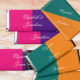 Lebhafte, farbenfrohe, minimalistische Hochzeitskollektion mit hellen Rosa- und Orangenfarben. Farben mischen und passen