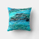 Ein stilvolles, auffälliges Kissen oder ein Kissen in türkisfarbenem Schwarz/Weiß, in einem abstrakten, handbemalten Design, das auf "Waves" hinweist, von Judy Adamson.