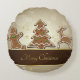 Elegante und köstliche Weihnachtsbilder: dekorierter Lebkuchenweizenbaum, Lebkuchenmann und Lebkuchenhirsch mit goldenen Sternen auf braunem Bukett.