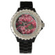 Schwarze Damen Email Strassuhr