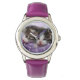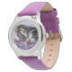 Uhr, Kinderuhr aus Edelstahluhr mit lila Lederarmband