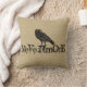Ein Leinwandblick-Halloween-Kissen mit einem schwarzen Raben und das Wort nie wieder auf ihm.