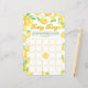 Mit diesem Personalisierten Lemon Baby Shower Baby Bingo Game können Sie sich mit einer Touch amüsieren! Ein perfektes Spiel für die Gäste, mit einem frischen Zitrusdesign, das Ihre lemonen Babydusche Ideen ergänzt. Dieses Spiel ist ideal für eine Zitronendusche und eignet sich hervorragend zum Feiern unter der Sonne, was es zu einem Muss für die Babydusche im Sommer macht. Perfekt für jede Sommer Babydusche Ansammlung!