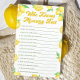 Mit diesem personalisierten "Who Knows Mommy Best"-Spiel können Sie Ihrer Zitronendusche eine lustige Touch hinzufügen. Dieses Spiel ist perfekt für ein Zitronenduschthema geeignet und ist eine großartige Ergänzung zu Ihren Zitronenmotiven der Babydusche. Die Gäste werden ihre Liebe testen, während sie die Mama-to-be feiern. Dieses Spiel ist ein Muss für die Babydusche im Sommer und bringt eine frische und fröhliche Atmosphäre in Ihre Babydusche!