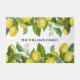 Moderne Zitrusfrüchte Türmatte mit Familienname. Einfach den Namen ändern. Dieses Zitronenwasser-Aquarell-Design wird Ihre Zuhause erhellen.