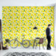 Kinderwallpaper mit freundlichen, lächelnden, Zitronen. Es ist schälen und kleben, damit Sie einen großen Designeinschlag ohne das Durcheinander bekommen. Nimm diese Tapete heute und füge sie zu den Wänden deines Kindes hinzu! Fröhliche Zitronenfrucht-Muster Kids-Tapete Sweetsham Food Art | ©Melissa Patton - Illustrator/Designer