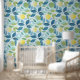 Lemon Grove Bliss - Blau, Grün, Gelb - Bio Tapete