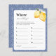 Viel Spaß beim Brautparty/Bachelorette mit diesem coolen Spiel mit hübscher Aquarelllemon-Blüte, blauen Fliesen und bearbeitbarem Text. Passen Sie es an, wenn nötig, indem Sie auf "Bearbeiten mit dem Design-Tool" klicken.